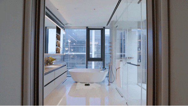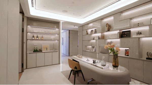 不只如斯,卫生间的台盆、马桶等选自唯宝,可以或许带来宽阔的空间感触感染。沿墙壁能够摆下多个收纳柜、粉饰柜等等,这里承载了诸多国际化糊口想象,